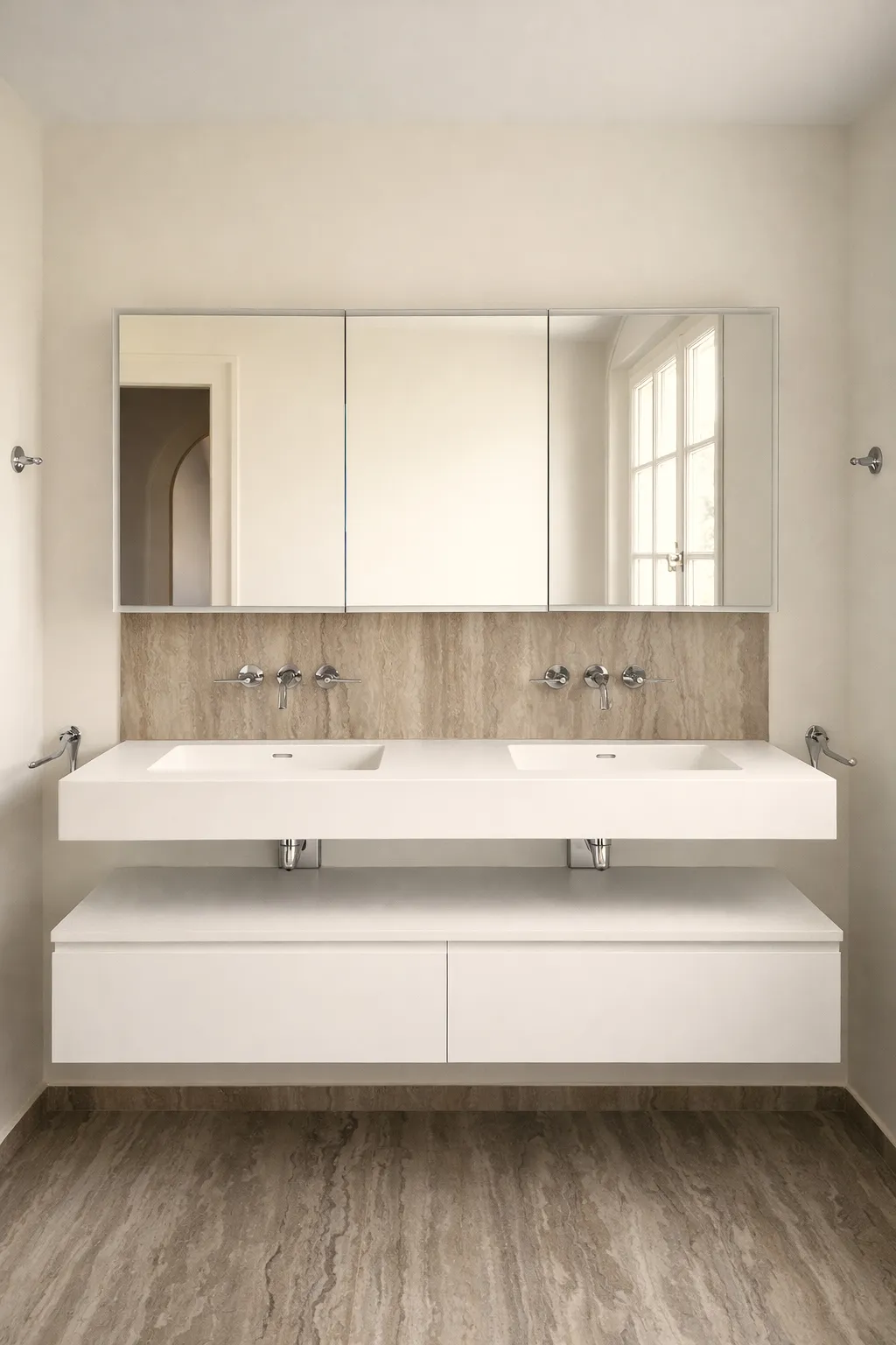 Transformation d’une maison bourgeoise du début du XXe siècle. Rénovation centrée sur la cuisine et les salles de bains, avec reprise complète des installations techniques.